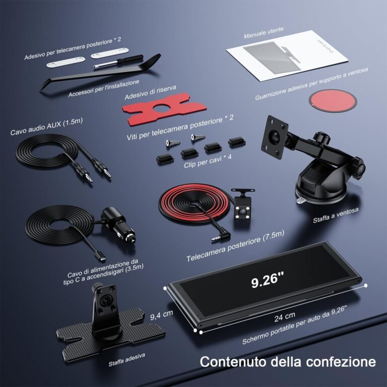 Questo display per auto wireless è dotato di uno schermo touchscreen IPS da 9,26 pollici con risoluzione 1600×600, per una visione più chiara